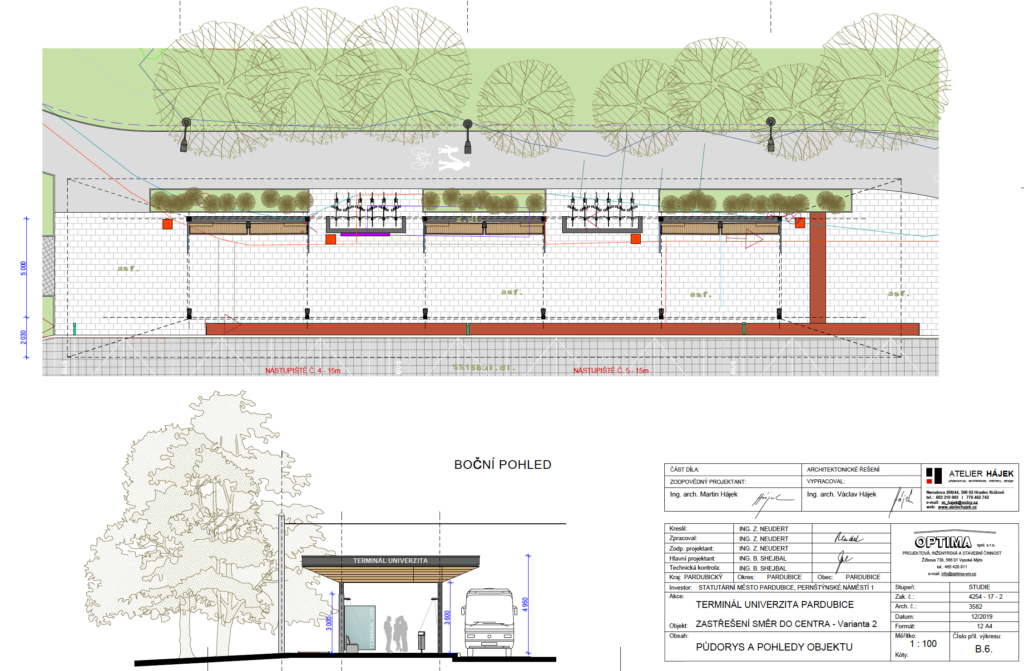 V následujícím bodě jsme měli schválit finální podobu návrhu stavby Terminálu Univerzita. Na poslední chvíli jsem v den jednání připravil návrhy na jeho korigování, které současně respektují, že tato stavba má být financována z dotací ITI, a proto je nezbytné spět velmi rychle ke stavebnímu povolení. V první řadě jsem upozornil na fakt, že navržené řešení za přístřeškem zastávky „Polabiny, Hradecká“ ve směru do centra je nerealizovatelné, jelikož návrh absolutně ignoruje skutečný stav terénu a stromů: